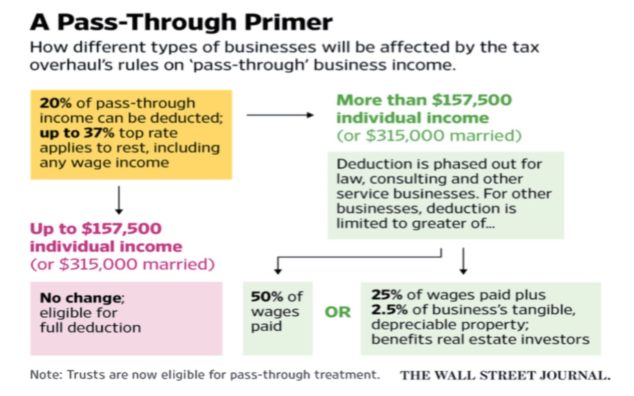 20% of net income can now be deducted for qualifying pass-through business owners whose taxable income is below $157,500 for individuals and $315,000 for married couples.